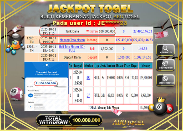 Bukti Jackpot Togel Online ABUTOGEL Sabtu 11 Oktober 2025 - ABUTOGEL adalah bo togel onlinne terpercaya. Berikut ini kami berikan...