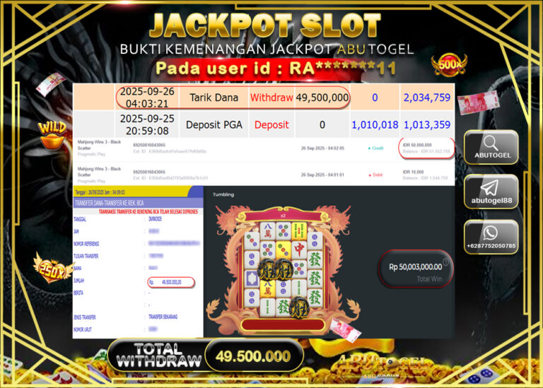 Bukti Jackpot ABUTOGEL Slot Online Jumat 26 September 2025 - ABUTOGEL adalah situs slot gacor maxwin terpercaya. Berikut ini kami...