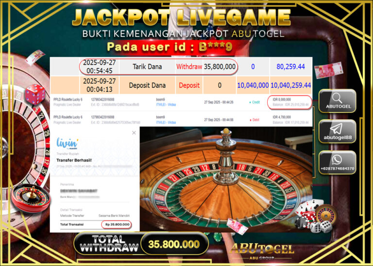 Bukti Jackpot ABUTOGEL Live Casino Sabtu 27 September 2025 - ABUTOGEL adalah situs live casino terpercaya. Berikut ini kami berikan...