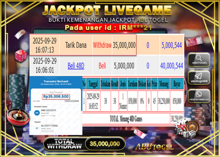 Bukti Jackpot ABUTOGEL Live Casino Kamis 25 September 2025 - ABUTOGEL adalah situs live casino terpercaya. Berikut ini kami berikan...