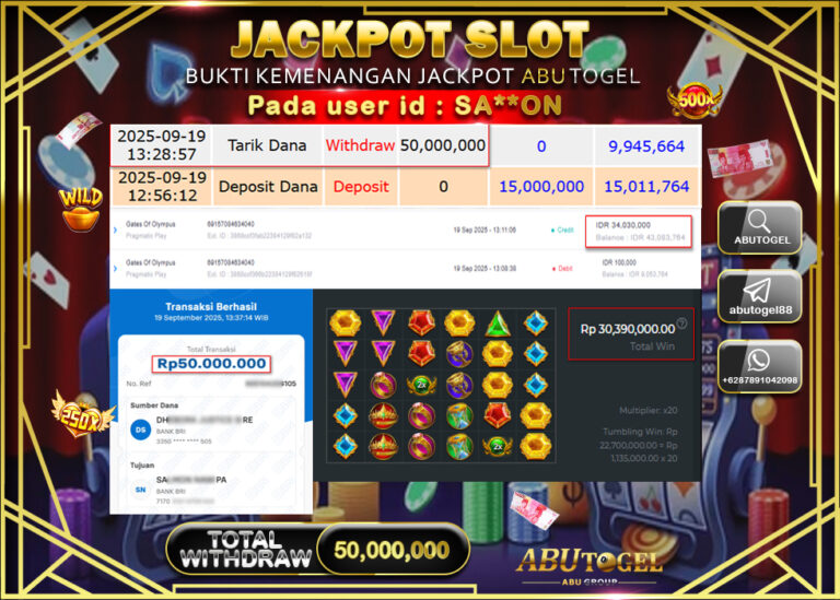 Bukti Jackpot ABUTOGEL Slot Online Sabtu 13 September 2025 - ABUTOGEL adalah situs slot gacor maxwin terpercaya. Berikut ini kami...