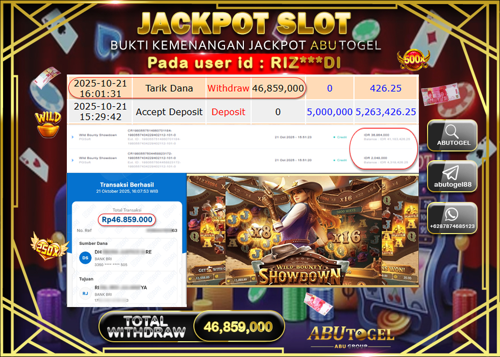 3 min readBukti Jackpot ABUTOGEL Slot Online Selasa 21 Oktober 2025 – ABUTOGEL adalah situs slot gacor maxwin terpercaya. Berikut ini kami berikan info bukti jackpot member ABUTOGEL yang sudah kami bayar lunas dalam permainan slot gacor.
