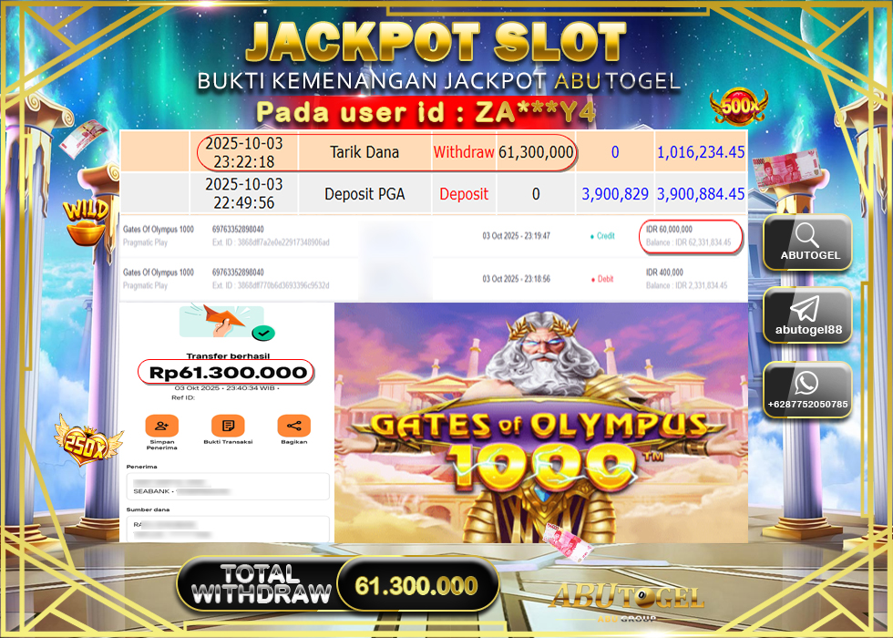 3 min readBukti Jackpot ABUTOGEL Slot Online Jumat 03 Oktober 2025 – ABUTOGEL adalah situs slot gacor maxwin terpercaya. Berikut ini kami berikan info bukti jackpot member ABUTOGEL yang sudah kami bayar lunas dalam permainan slot gacor.